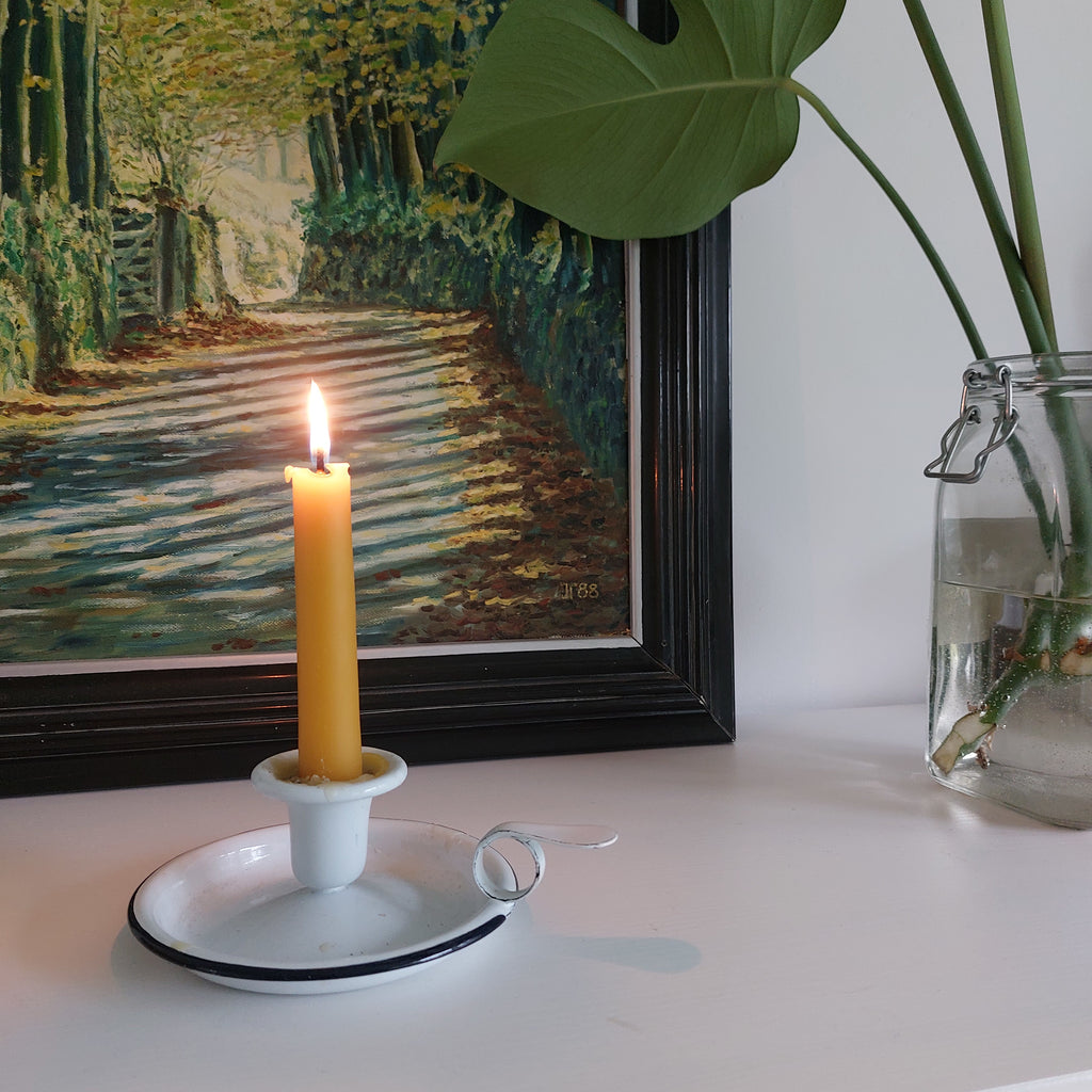 Kaarsen gemaakt van 100% natuurlijke bijenwas en een katoenen lont. De kaarsen zijn 24 cm lang en branden ongeveer 7 uur.