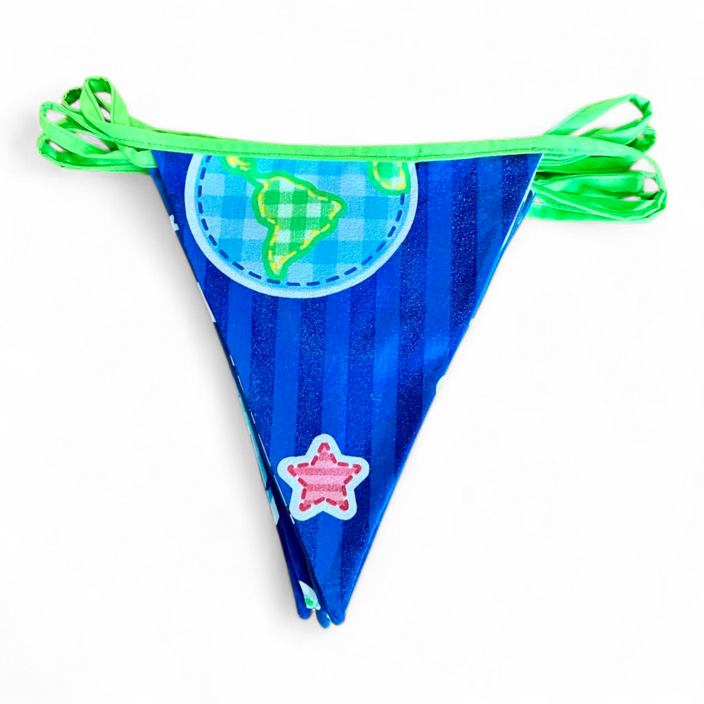 Unieke katoenen vlaggetjes van hergebruikt katoen! Voor jarenlang plezier. Wasbaar op 40 graden.